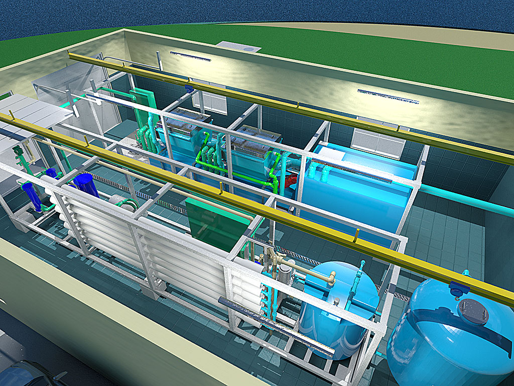 Die Prozesssteuerung erfolgt automatisch nach Parametervorgabe am Touch-Panel, ebenso die Registrierung, Anzeige und Alarmierung, sowie Datenspeicherung der produzierten Wassermenge.