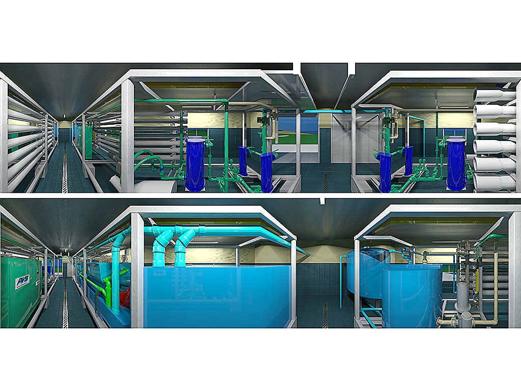 Je nach Vorgaben im Projekt können die RO-Anlagen für indoor-Aufstellung in Rahmenkonstruktion (Duplex-System), oder in Container-Bauweise für outdoor-Installationen, ausgeführt werden.