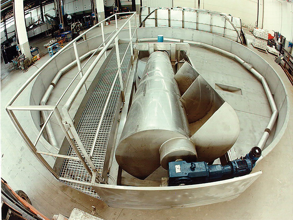 - Entnahme/Abschöpfung des Flotat-Schlammes erfolgt durch höhenverstellbare Eintauchtiefe des Schnecken-Schöpfwerkes, die eine rückstandsfreie Erfassung und Abtransport gewährleistet.