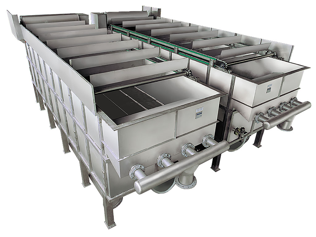 - Komplett getauchte Lamellenblöcke mit abgestimmter hydraulischen Strömungs-Einbringung.