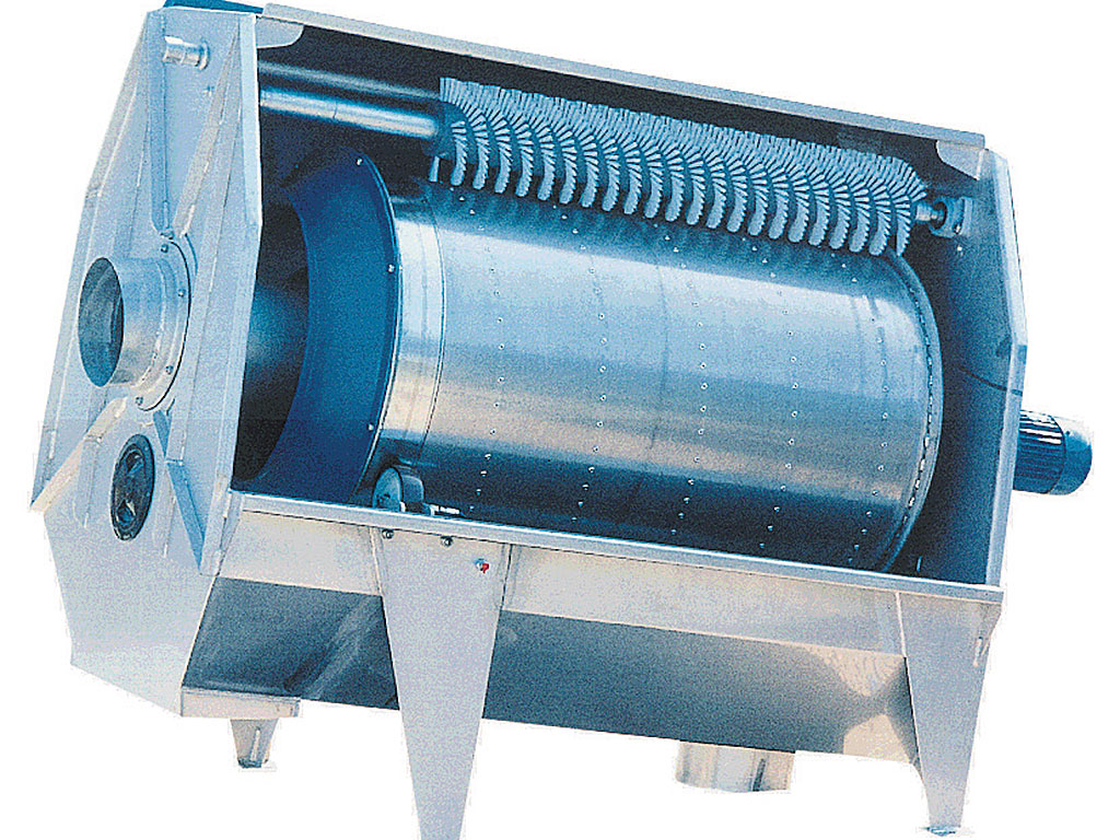 Das Anschwemmprinzip wird durch die rotierende Siebtrommel unterstützt. Die Feststoffe, welche mit dem Abwasser in die Siebtrommel gelangen, verbleiben so lange im Siebraum bis sie mit der innen liegenden Förderschnecke zum Feststoffabwurf geführt werden.